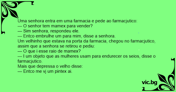 Uma senhora entra em uma farmacia e pede ao farmacjutico: