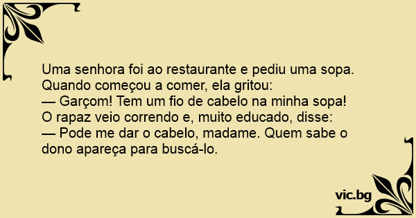 — Garçom! Tem um fio de cabelo na minha sopa!