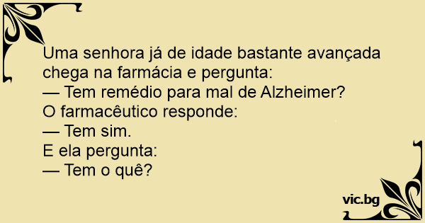 — Tem remédio para mal de Alzheimer?