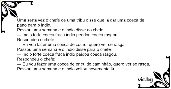 — Indio forte coeca fraca indio peidou cunhão estourou.
