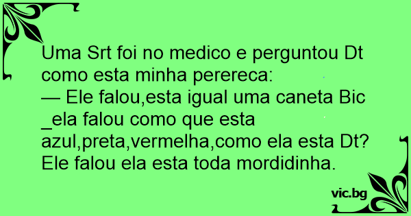 Uma Srt foi no medico e perguntou Dt como esta minha perereca: