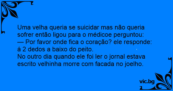 No outro dia quando ele foi ler o jornal estava escrito velhinha morre com facada no joelho.