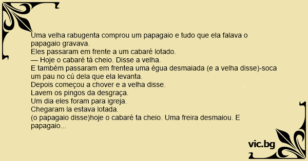 (o papagaio disse)hoje o cabaré ta cheio. Uma freira desmaiou. E papagaio disse.