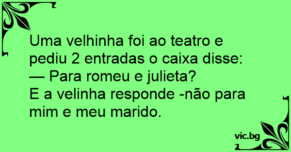 Uma velhinha foi ao teatro e pediu 2 entradas o caixa disse: