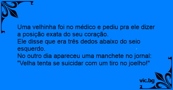 Uma velhinha foi no médico e pediu pra ele dizer a posição exata do seu coração.