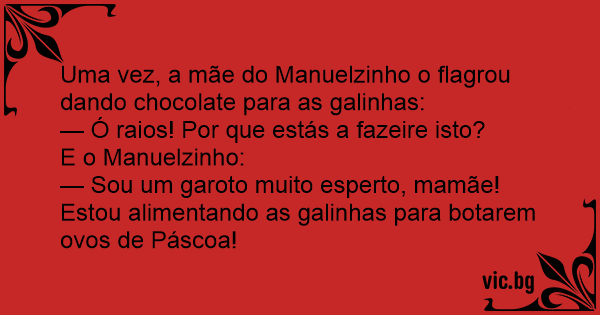 Uma vez, a mãe do Manuelzinho o flagrou dando chocolate para as galinhas: