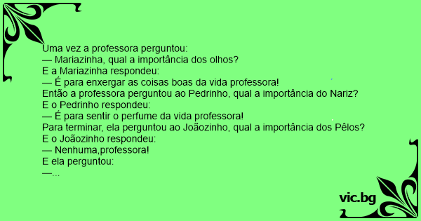 Para terminar, ela perguntou ao Joãozinho, qual a importância dos Pêlos?