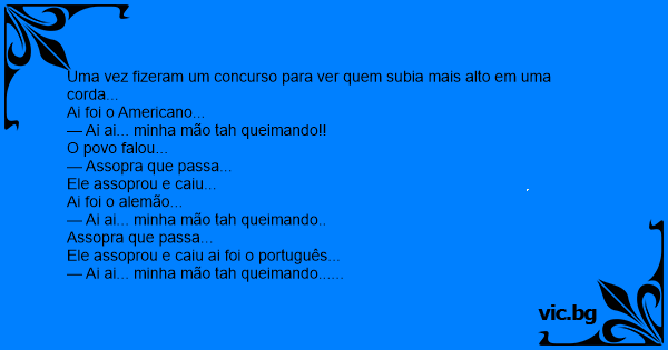 Assopra que passa e fazendo gestos com a mão o português falou...