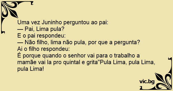 É porque quando o senhor vai para o trabalho a mamãe vai la pro quintal e grita"Pula Lima, pula Lima, pula Lima!