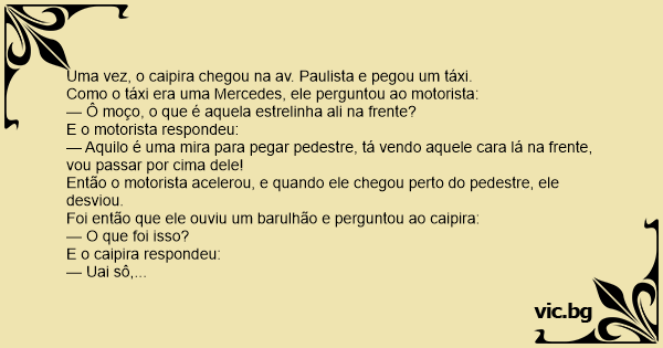 Uma vez, o caipira chegou na av. Paulista e pegou um táxi.