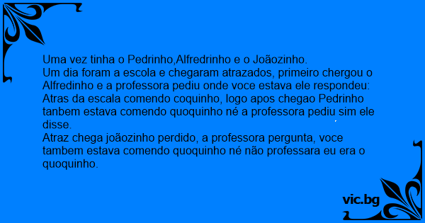 Um dia foram a escola e chegaram atrazados, primeiro chergou o Alfredinho e a professora pediu onde voce estava ele respondeu: