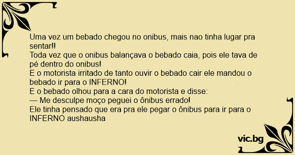 E o motorista irritado de tanto ouvir o bebado cair ele mandou o bebado ir para o INFERNO!