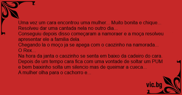 Uma vez um cara encontrou uma mulher... Muito bonita e chique... Resolveu dar uma cantada nela no outro dia...