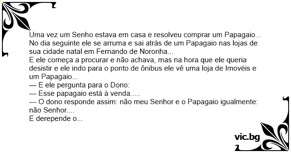 Uma vez um Senho estava em casa e resolveu comprar um Papagaio...