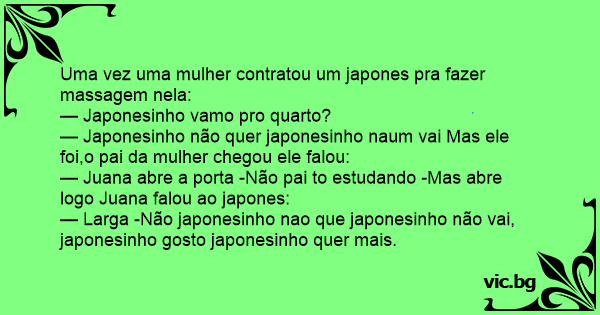 — Japonesinho não quer japonesinho naum vai Mas ele foi,o pai da mulher chegou ele falou: