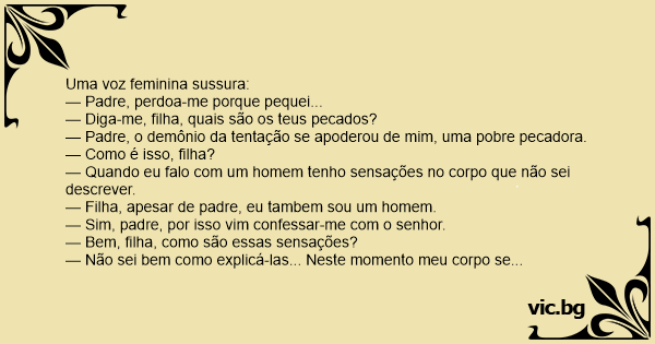 — Padre, o demônio da tentação se apoderou de mim, uma pobre pecadora.