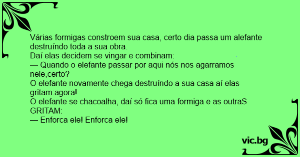 O elefante se chacoalha, daí só fiса uma formiga e as outraS GRITAM: