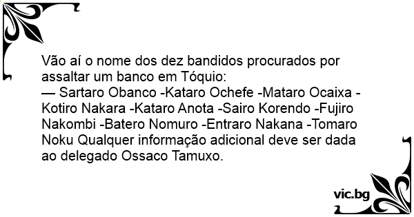 Vão aí o nome dos dez bandidos procurados por assaltar um banco em Tóquio: