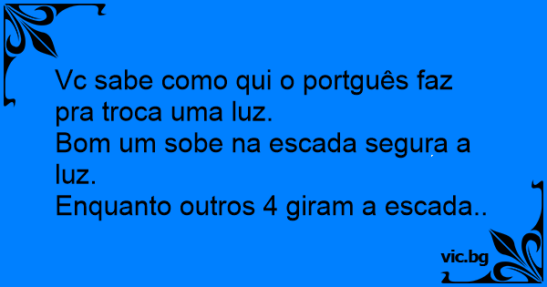 Vc sabe como qui o portguês faz pra troca uma luz.