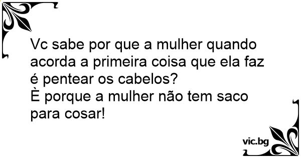 Vc sabe por que a mulher quando acorda a primeira coisa que ela faz é pentear os cabelos?