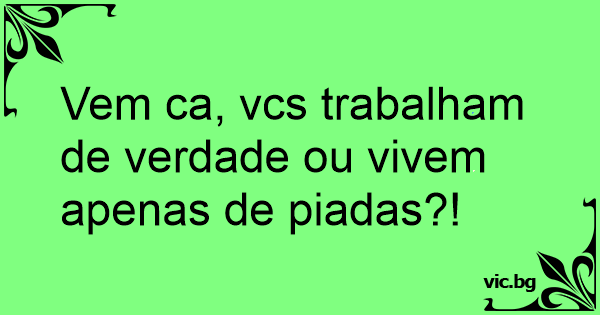 Vem ca, vcs trabalham de verdade ou vivem apenas de piadas?!
