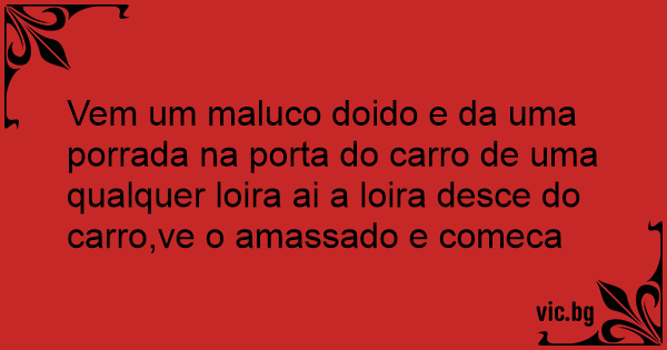 Vem um maluco doido e da uma porrada na porta do carro de uma qualquer loira ai a loira desce do carro,ve o amassado e comeca