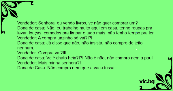 Vendedor: Senhora, eu vendo livros, vc não quer comprar um?