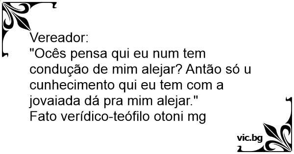 "Ocês pensa qui eu num tem condução de mim alejar? Antão só u cunhecimento qui eu tem com a jovaiada dá pra mim alejar."