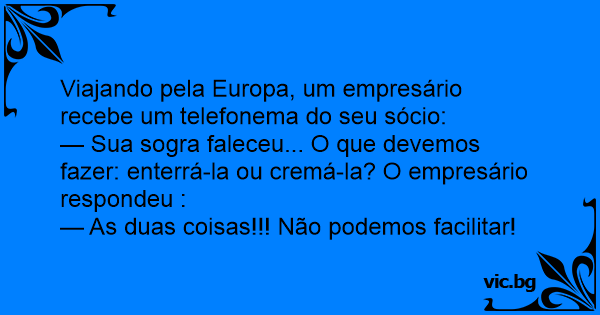 — Sua sogra faleceu... O que devemos fazer: enterrá-la ou cremá-la? O empresário respondeu :