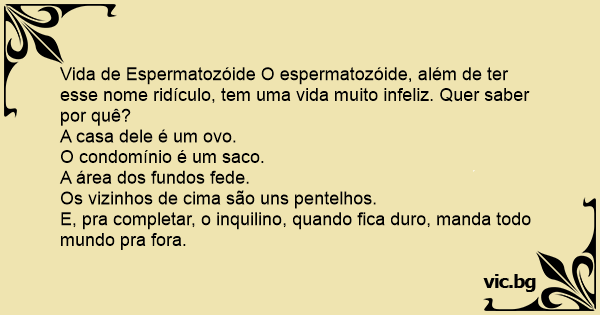 Vida de Espermatozóide O espermatozóide, além de ter esse nome ridículo, tem uma vida muito infeliz. Quer saber por quê?