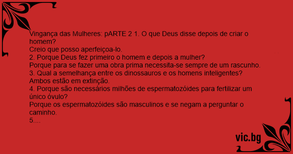 Vingança das Mulheres: pARTE 2 1. O que Deus disse depois de criar o homem?