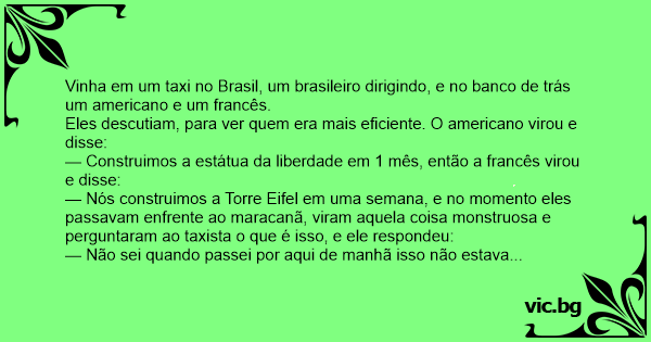 Vinha em um taxi no Brasil, um brasileiro dirigindo, e no banco de trás um americano e um francês.