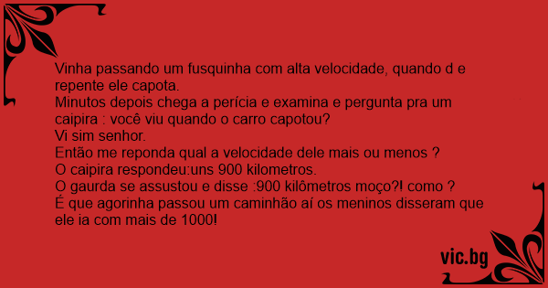Minutos depois chega a perícia e examina e pergunta pra um caipira : você viu quando o carro capotou?
