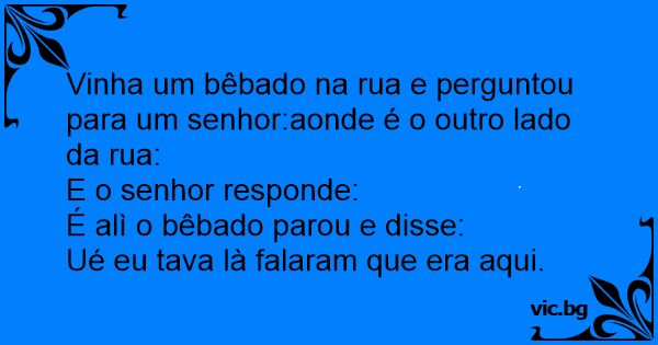Vinha um bêbado na rua e perguntou para um senhor:aonde é o outro lado da rua: