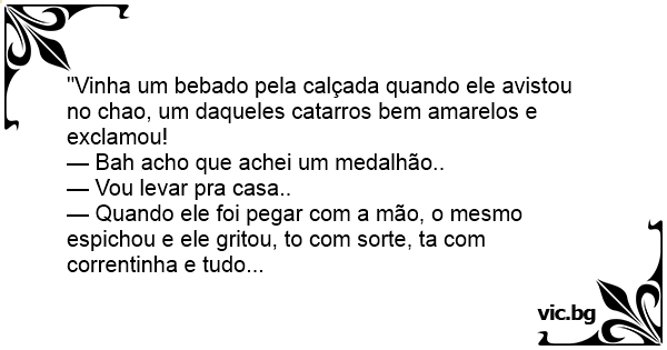 "Vinha um bebado pela calçada quando ele avistou no chao, um daqueles catarros bem amarelos e exclamou!