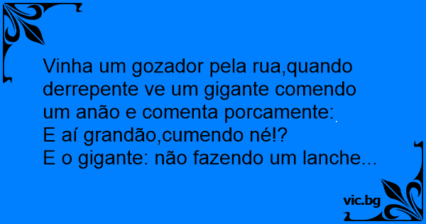 Vinha um gozador pela rua,quando derrepente ve um gigante comendo um anão e comenta porcamente: