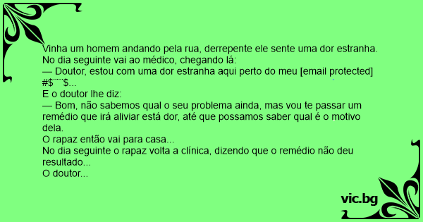 Vinha um homem andando pela rua, derrepente ele sente uma dor estranha. No dia seguinte vai ao médico, chegando lá: