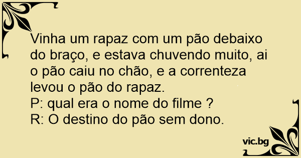 Vinha um rapaz com um pão debaixo do braço, e estava chuvendo muito, ai o pão caiu no chão, e a correnteza levou o pão do rapaz.