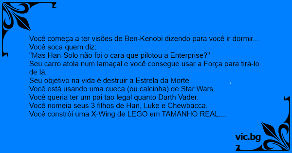 Você nomeia seus 3 filhos de Han, Luke e Chewbacca.