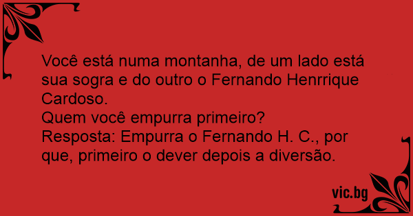 Você está numa montanha, de um lado está sua sogra e do outro o Fernando Henrrique Cardoso.