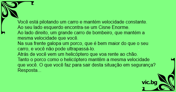 Tanto o роrсо como o helicóptero mantêm a mesma velocidade que você. O que você faz para sair desta situação em segurança?