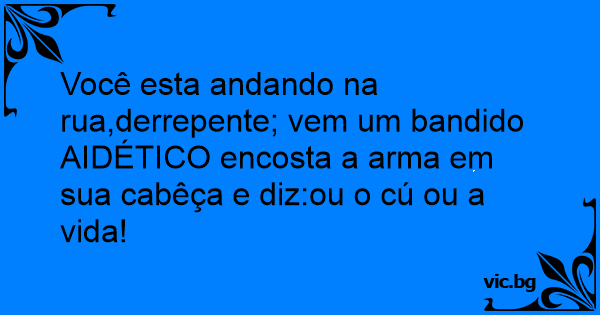 Você esta andando na rua,derrepente; vem um bandido AIDÉTICO encosta a arma em sua cabêça e diz:ou o cú ou a vida!