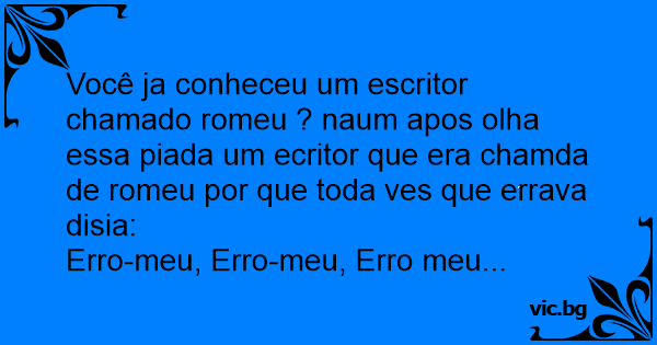 Você ja conheceu um escritor chamado romeu ? naum apos olha essa piada um ecritor que era chamda de romeu por que toda ves que errava disia: