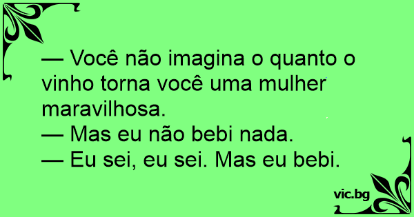 — Você não imagina o quanto o vinho torna você uma mulher maravilhosa.