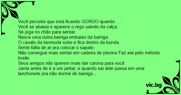 Você percebe que esta ficando GORDO quando . . .