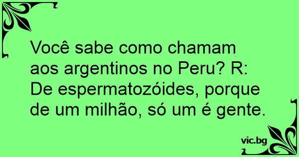 Você sabe como chamam aos argentinos no Peru? R: De espermatozóides, porque de um milhão, só um é gente.