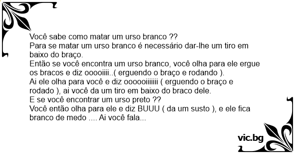 Para se matar um urso branco é necessário dar-lhe um tiro em baixo do braço.