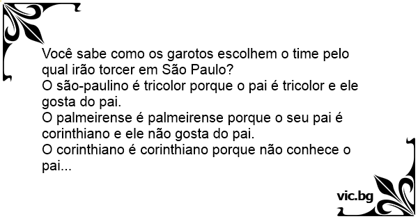 O palmeirense é palmeirense porque o seu pai é corinthiano e ele não gosta do pai.