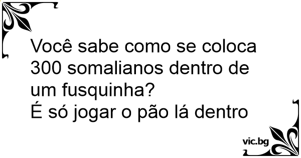 Você sabe como se coloca 300 somalianos dentro de um fusquinha?