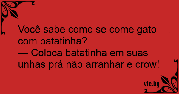 Você sabe como se come gato com batatinha?